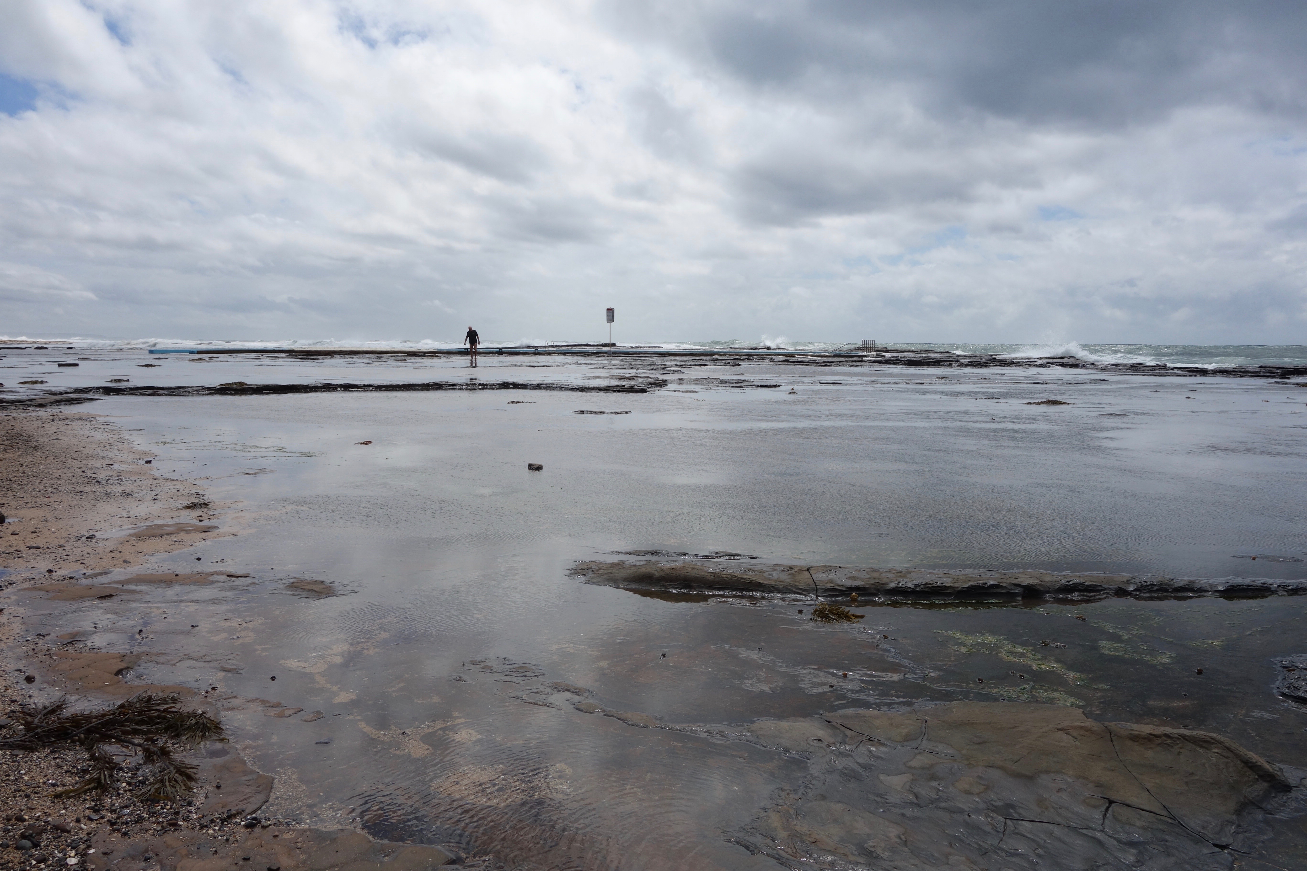 Even when the sea is not turquoise or even blue, it can still have a unique beauty. This steel grey rock pool at Coledale in Woollongong, the biggest rock pool I’ve ever seen, reflects the expanse of grey clouds in its smooth grey surface and takes my breath away. One old man was swimming in the sea baths while I was there. It wasn’t a warm day. But he had the whole baths, this whole part of the ocean, to himself.