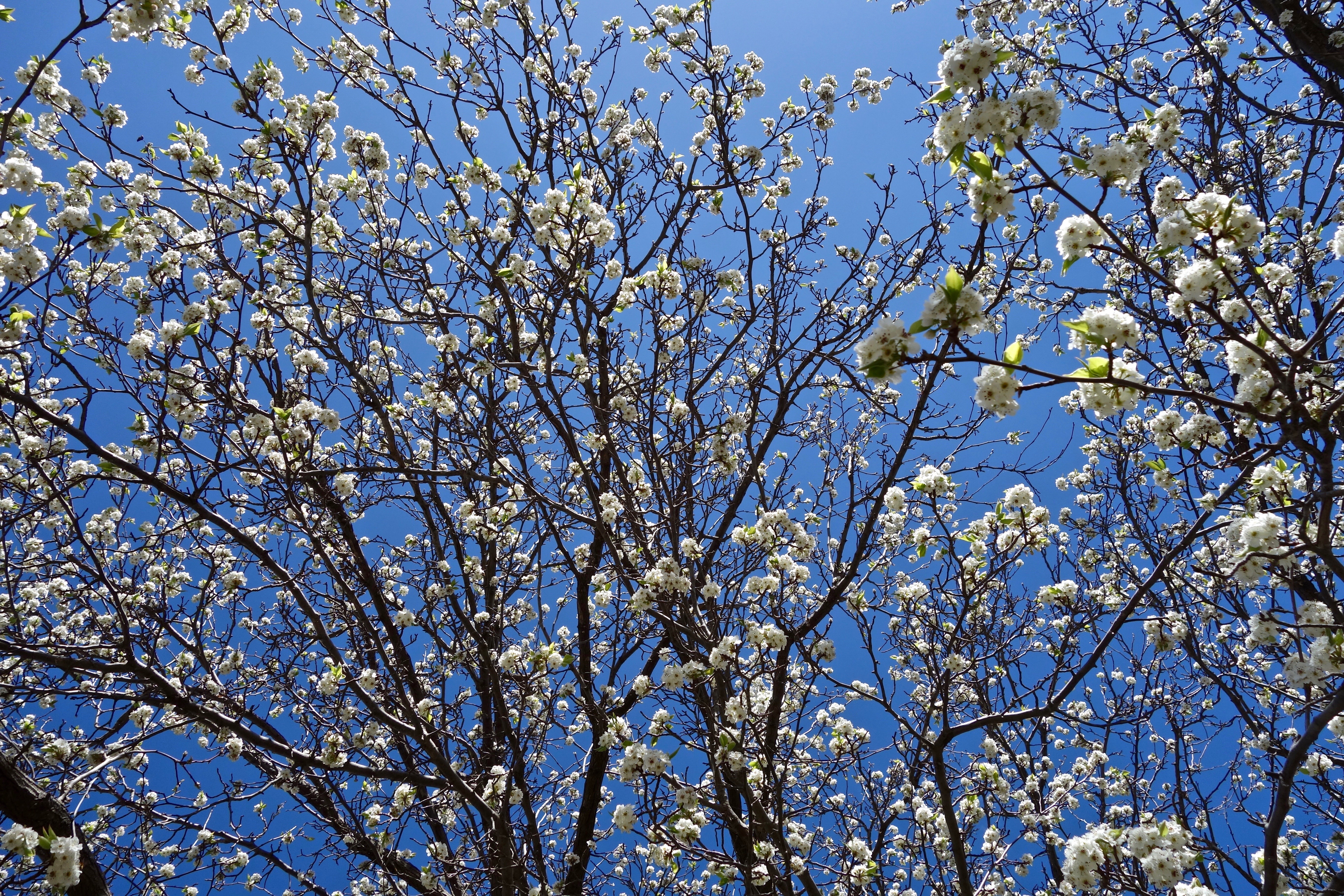 Here are some I snapped today on my stroll to the local shop, a row of half a dozen white prunus that have just bloomed and are already dropping petals to form a snowy blanket on the footpath below. They might technically be fruiters but this stand of trees hasn’t produced anything edible in the twenty years I’ve been walking under them, which is probably a good thing since the path would be covered in squishy fruit.