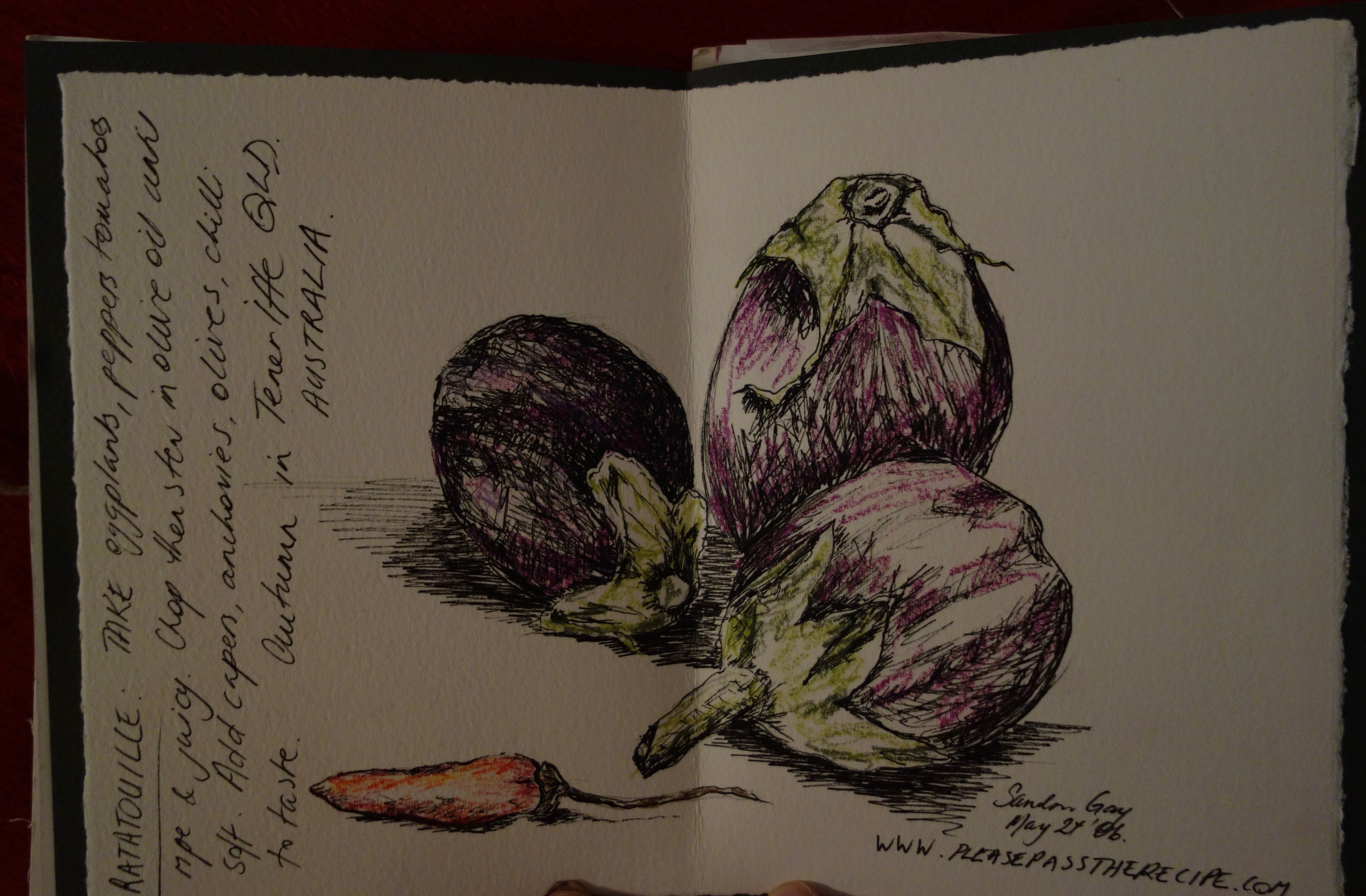 The sketchbook has now returned from its round-the-world trip back to Anne’s house. It’s been a unique pleasure for each of us to decide on a suitable contribution and then execute it.