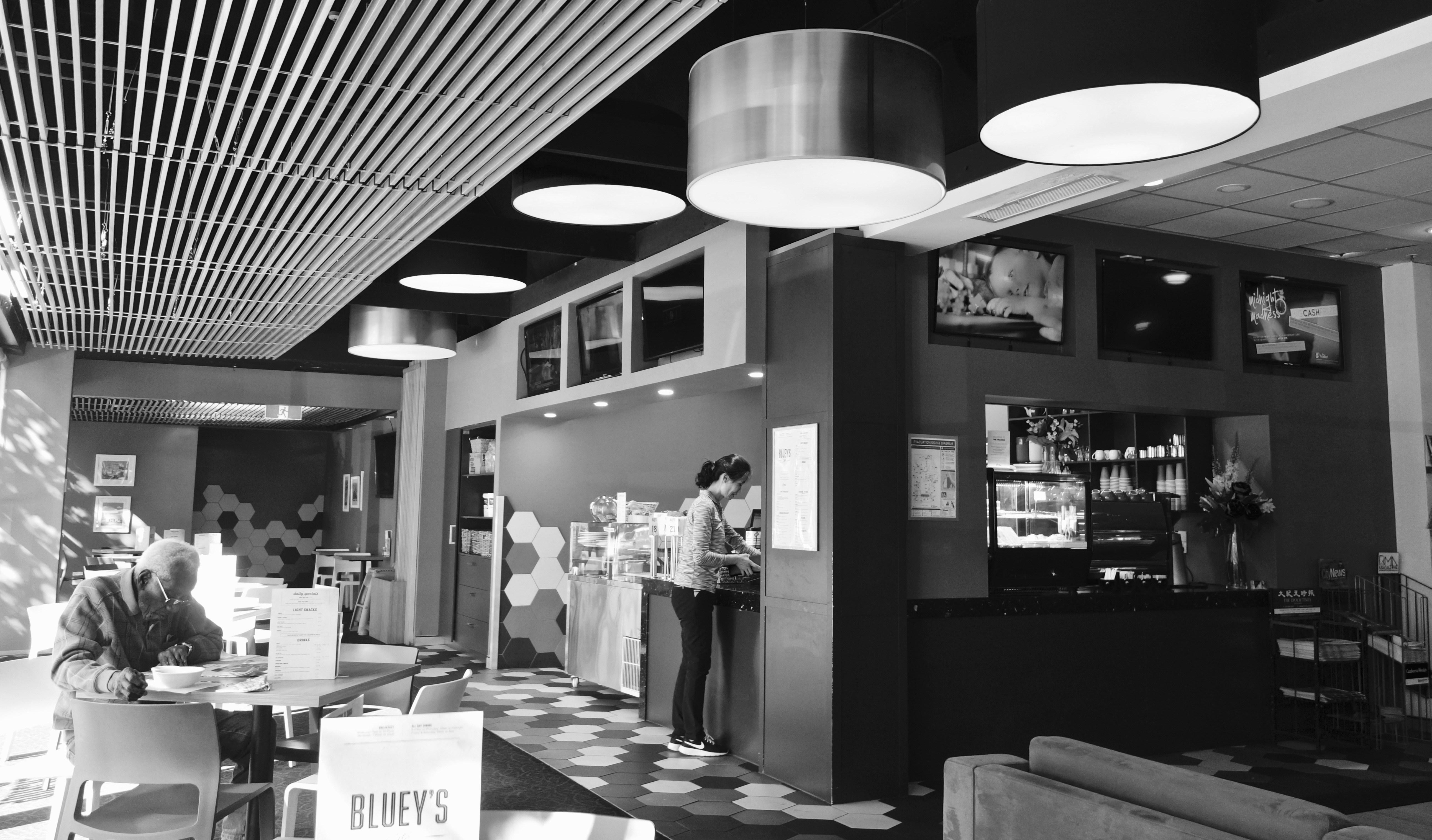 Today I snapped this one of two men in Bakers Delight not looking at a poster on their right of a woman hiding her breasts with two pink buns, part of a campaign for the Breast Cancer Network of Australia.