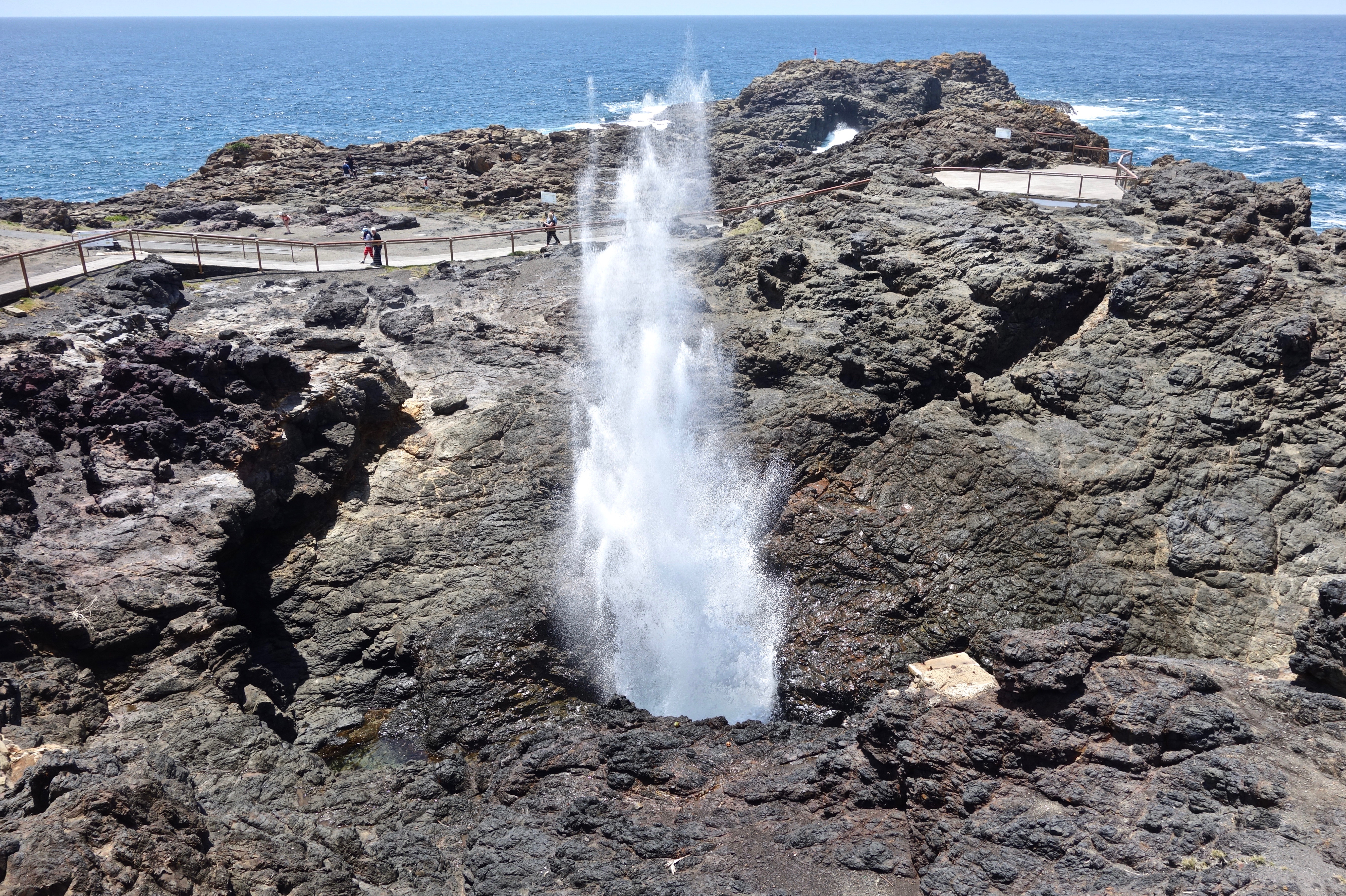 Further up the coast is Kiama and the Devil’s Blowhole, a gap in the cliff rocks where waves come rushing into a cave below and shoot up through the hole like a fountain. The spout has taken a few lives over the centuries, but today a fence ensures that as long as I stay behind it, my worries will be washed away but I won’t!