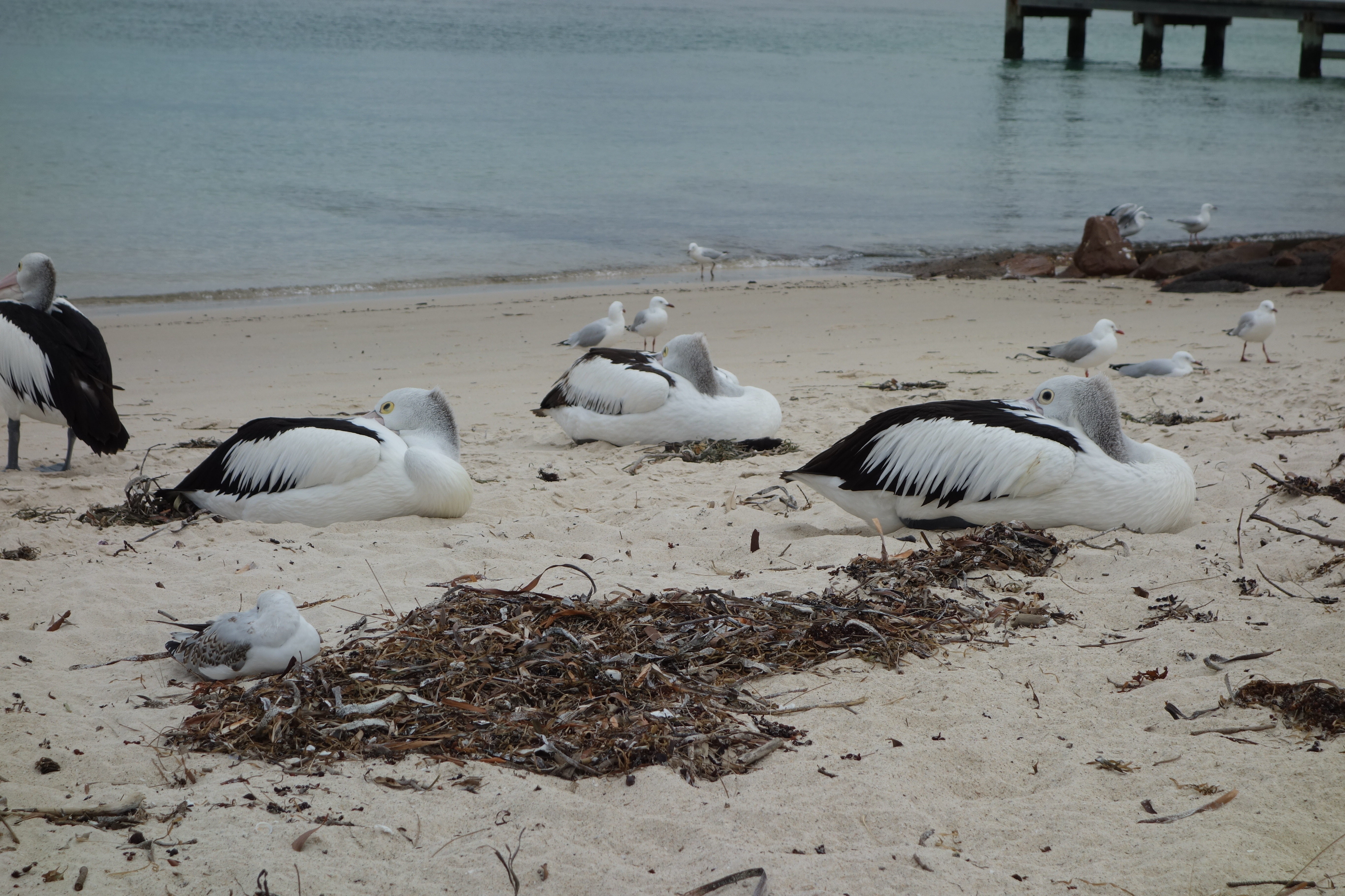 But the best moments are when I see real creatures on the beach. On a shore near the old Nelson Bay lighthouse (now the Inner Light Tea Rooms!) these pelicans and seagulls made my day with their sleepy poses and big doll eyes.